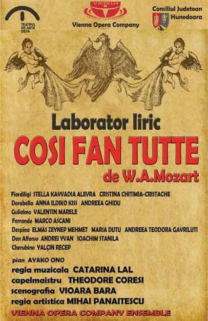 Este prima producție de operă a Teatrului de Artă Deva, inspirată de un caz real, în traducere ”Aşa fac toate” sau cu subtitlul ”Şcoala amanţilor”Vezi secvențe -